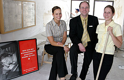 RHEINBERG. Der Geldautomat an der Sparkassen-Geschäftsstelle Römerstraße läuft wieder. Im Zuge der Modernisierungs- und Umbauarbeiten dort erhielt das Gerät einen neuen Standort und mußte vorübergehend vom Netz genommen werden. Nach dem Um- und Ausbau stehen voraussichtlich ab Anfang Oktober in der dann rund 170 Quadratmeter großen Geschäftsstelle an der Römerstraße zusätzlich zwei separate Beraterzimmer zur Verfügung. „Wir können dann vor Ort Kundengespräche mit der angemessenen Diskretion anbieten“, sagt Vermögensberater Theo Janßen. Zudem freut sich das Team von Sonja Breitenbruch über die Entscheidung des Vorstandes, die Räume mit einer Klimaanlage auszustatten.