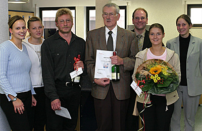 Gefragt war, welche vierstellige Zahl den früheren Kontonummern der Sparkasse im Unternehmensbereich Rheinberg seit der EDV-Umstellung im September voransteht. Die richtige Antwort: 1560. Überdies mußten die Teilnehmer wissen, über wie viele Beratungsräume die Geschäftsstelle nach dem Umbau nun verfügt und wie alt das Team um Sonja Breitenbruch zusammengerechnet ist. Hier waren drei und 131 die richtigen Antworten.