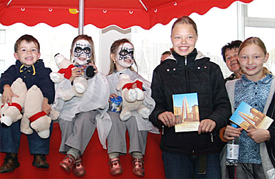 RHEINBERG. Ein Ritter muß allerlei können. Das erfuhren am Weltspartag rund 60 Kinder in der Kundenhalle der Geschäftsstelle der Sparkasse in Rheinberg. Die freie Theatergruppe „Die Rabenmütter“ sang und spielte den Kindern ein Potpourri aus ihren beiden Musicals über den „Ritter Rost“ vor. Beate Spira, Ensemblemitglied und Regisseurin der seit 2001 bestehenden Gruppe: „Die Vorstellung ist ein Dankeschön an die Kulturstiftung der Sparkasse Rheinberg.“ Das Kuratorium der 1997 gegründeten Stiftung hatte den Rabenmüttern rund 2000 Euro für eine von ihnen dringend benötigte Verstärkeranlage bewilligt.