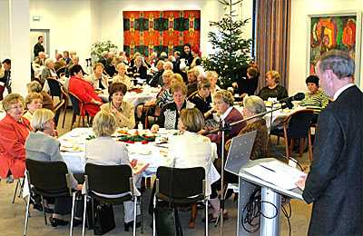 Das Team der Personalabteilung um Karl-Heinz Bauer hatte wieder verläßlich und liebevoll dafür gesorgt, daß die Weihnachtsfeier in angemessenem und festlichem Rahmen stattfinden konnte. Die Vorbereitung und Ausführung lagen in den Händen von Gertraud Wörner, für die Bewirtung und Betreuung der Gäste sorgten Angelika Schepers, Hannelore Thal, Christine Goldau, Sandra Zimmermann, Gertraud Wörner und Jürgen Renner. Unterstützt wurden sie traditionell durch Auszubildende des 3. Ausbildungsjahres, diesmal waren es André Cronenberg, Michael Neumann, Nina Richly, Michaela Schaaf, Sarah Schanzenbach, Sarah Schmieder und Nina Stankovic. Ihnen allen galt der herzliche Dank des Vorstandsvorsitzenden.