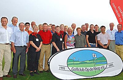 NIEDERRHEIN. Das High-Light der Jubiläums-Festwoche zum zehnjährigen Bestehen des Golfclubs Op de Niep bildete am Samstag sicherlich das traditionelle Sparkassenturnier, das dann abends in ein stimmungsvolles Sommerfest unter der Überschrift „Karibische Nacht“ mündete. Bestens umsorgt wurden die insgesamt 111 Teilnehmer von den Mitarbeiterinnen der Marketing-Abteilung. Auf deren freundliches Lächeln führte Vorstandsvorsitzender Karl-Heinz Tenter bei der Siegerehrung die Tatsache zurück, dass die Turniere des Kreditinstituts in Niep stets von schönstem Wetter begleitet würden. Er selbst habe an einer „laufenden Vorstandssitzung“ teilgenommen. In der Tat hatten seinem Flight Präsident Dr. Claus Hein, Vizepräsident Axel Weimann und Ex-Präsident Georg-Wilhelm Kolkmann-Reinhard angehört...