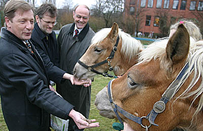 NEUKIRCHEN-VLUYN. Karl-Heinz Tenter und Bernhard Uppenkamp, Mitglieder des Sparkassenvorstandes, besuchten jetzt Haus Elim. Der Grund: Pferd Kosima, das die Sparkasse 1996 gekauft hatte, bekam im Mai vergangenen Jahres Nachwuchs. Das Fohlen Amelie und sechs weitere Pferde leisten dort im Rahmen der heilpädagogischen Therapie eine wichtige Arbeit. Von Hans-Wilhelm Fricke-Hein, Direktor des Erziehungsvereins, erfuhren die Sparkassendirektoren mehr über die Angebote der bundesweit agierenden Einrichtungen für Kinder-, Jugend- und Behindertenhilfe.