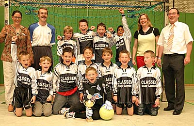 NEUKIRCHEN-VLUYN. Der Jubel war ohrenbetäubend. Nach dem alles entscheidenden Spiel im 21. Fußballturnier der Grundschulen lagen sich die Jungen der GGS Neukirchen-Süd hüpfend in den Armen. In der Sporthalle des Julius-Stursberg-Gymnasiums spendeten die vielen großen und kleinen Fans der erfolgreichen Mannschaft lautstark Beifall. Mit einem Punkt Vorsprung hatten sich die kleinen Spieler nach sechs Partien gegen die Mannschaften der Pestalozzi-, Tersteegen- und Antonius-Schule durchgesetzt.