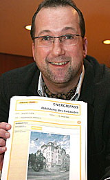 Der Fachreferent der Energieagentur NRW stellte den Energiepass vor. Verbindlich gültig ist er noch nicht, obwohl eine Gesetzesvorlage dazu zum 1. Januar diesen Jahres in Kraft getreten ist. „Bis jetzt läuft er auf freiwilliger Basis, doch es kann nicht schaden, sich schon einmal darüber zu informieren - denn er wird kommen.“ Wann genau, hänge davon ab, zu welchem Zeitpunkt die Energieeinsparverordnung (EnEV) 2006 in Kraft trete. Die Vorlage und die Verabschiedung im Bundesrat seien auf Grund der vorgezogenen Neuwahlen verschoben worden. Wer demnächst ein Haus kaufen oder verkaufen will, wer eine Wohnung vermietet, für den wird sich demnächst alles um den Energiepass drehen.