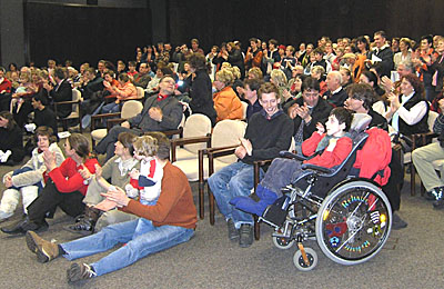 Rund 70 Zuhörer, junge Leute und Eltern, hatten sich in der Kundenhalle der Sparkassenhauptstelle am Ostring eingefunden. Die Marketing-Abteilung schickt gerne Informationsmaterial zu den Sprachreisen zu.