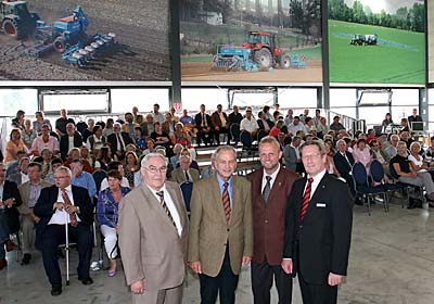 Erstmals richtete die Sparkasse am Niederrhein ein Ehrenamtsforum bei einem ihrer namhaftesten Firmenkunden aus. Vertreter von 69 Alpener Vereinen, Verbänden und Organisationen erhielten im AgroForum der Firma Lemken Spenden in Höhe von insgesamt 43.000 Euro. Von links: Dr. Georg Schmitz, Viktor Lemken, Bürgermeister Thomas Ahls und Sparkassendirektor Bernhard Uppenkamp.