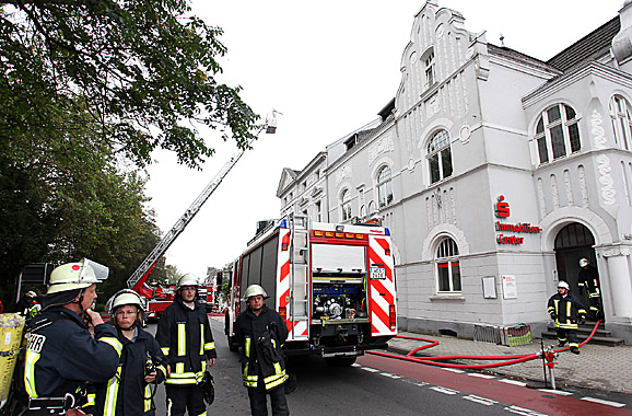 RHEINBERG. Zuletzt glimpflich ging ein Feueralarm in der Sparkasse an der Bahnhofstraße zu Ende. Am späten Vormittag informierte ein Notruf Kunden und Mitarbeiter, die daraufhin alle unbeschadet das Haus verließen. Die Feuerwehr lokalisierte den Brandherd unterm Dach. Die Ursache für das Feuer war offenbar ein defekter Kühlschrank. Nach rund zwei Stunden konnte die Wehr wieder abrücken. Gebietsdirektor Thorsten Holzgräfe: "Alle sind wohlauf und gesund, wir rochen mächtig nach Rauch, aber um 14 Uhr konnten wir die Geschäftsstelle wieder aufmachen." Ein herzlicher Dank gilt den Einsatzkräften von Feuerwehr und Polizei.