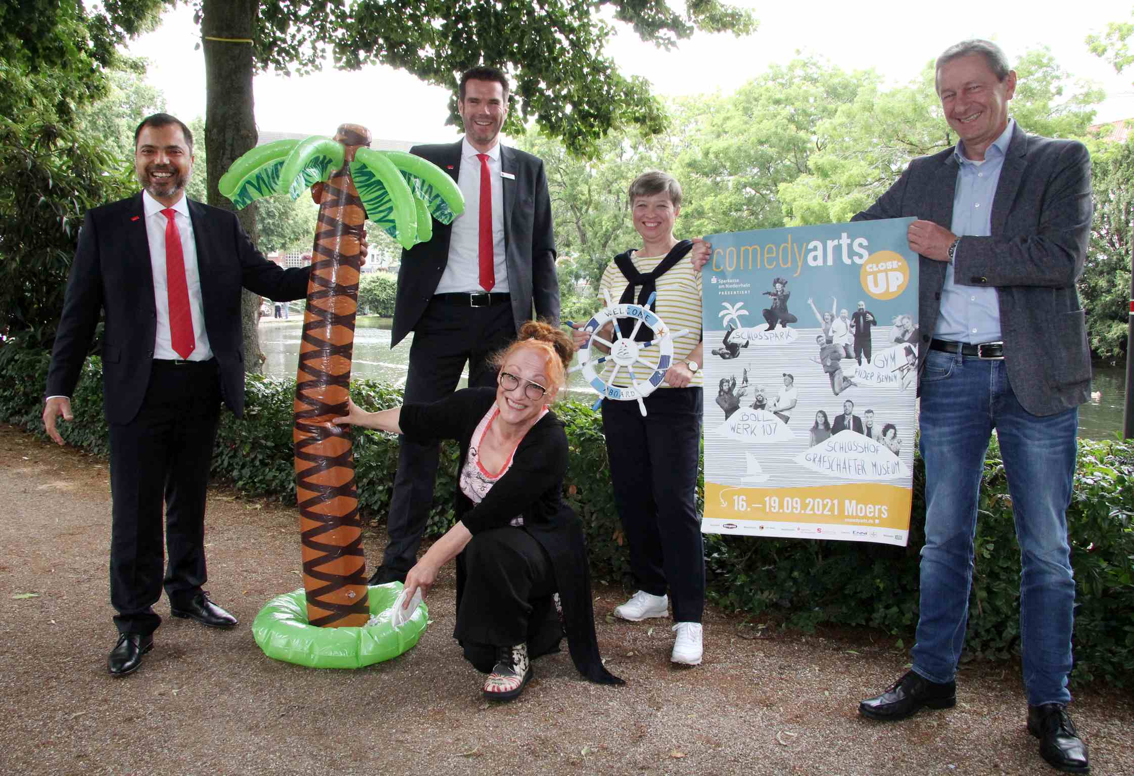 MOERS. Die Ärzte wollten nach Westerland auf Sylt, Madonna zog es auf La Isla Bonita, schon Harry Belafonte schwärmte von Island in the sun – und auch das ComedyArts ist reif für die Insel: 2021 entführt das Festival Gäste und Künstlerschar auf Moerser Kulturinseln. Vom 16. bis zum 19. September geht das ComedyArts mit „CloseUps“ in die Vollen: Geplant sind zum Teil parallele Shows mit Wortkabarett, Varietè, Comedy und Street-Performance an unterschiedlichen Standorten in und nahe der Innenstadt. Geplant sind Open Air-Bühnen am Bollwerk, im Schlosshof, im Park und am Gymnasium in den Filder Benden – als „ComedyArts CloseUps“ mit kleinem Publikum und ganz nah dran am Geschehen.