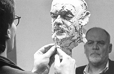 MOERS. Gesicht und Porträt eines Menschen sind für den Bildhauer Karlheinz Oswald zweierlei. In seinen Bronzeplastiken will Oswald, der berühmte Persönlichkeiten wie Kardinal Lehmann und Hanns Dieter Hüsch porträtiert hat, mehr festhalten als den äußerlich sichtbaren Eindruck. Im Rahmen einer Ausstellungseröffnung in der Sparkasse Moers übergab Oswald seine bereits 1988 entstandene Bronzearbeit „Hanns Dieter Hüsch“. Die Kulturstiftung Sparkasse Moers hatte die Plastik auf Vermittlung des Initiativkreises Moers hin angekauft. Seit Januar steht sie nun im Eingangsbereich der Zentralbibliothek, wo auch die Hüsch-Sammlung beheimatet ist.