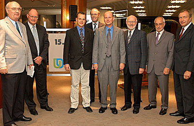 Am Rande der Eröffnung zeichneten der Rektor der Universität Duisburg, Professor Ingo Wolff, und Sparkassendirektor Hartmut Schulz die beiden diesjährigen Preisträger des Innovationspreises Mechatronik aus. Hartmut Schulz: "Wir verstehen die vielfältigen Kooperationen mit der Universität als unverzichtbare Bereicherung unserer Region." Am Donnerstag, 17.10.2002, referierte Professor Dietrich Grönemeyer unter dem Titel: "Med. in Germany - Verpasst Deutschland eine Chance?" (Bericht dazu hier im S-Kurier)