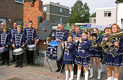 MOERS. Mit dem spektakulären Transport eines tonnenschweren Rohlings von Norwegen nach Moers begann vor fünf Jahren die Geschichte des Römerbrunnens in Asberg. An der Ecke der Römerstraße und der Konstantinstraße erinnert die Leihgabe der Kulturstiftung Sparkasse Moers seit 1998 an die Quellen der römischen Ortsgeschichte. Anläßlich seines fünfjährigen Bestehens lud die Asberger Bürgergemeinschaft im September 2003 zum ersten Asberger Brunnenfest ein.