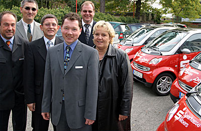 Wo immer die roten Smarts auftauchen, sorgen sie für Aufmerksamkeit. „Wenn man mit diesen Autos unterwegs ist, schauen die Leute herüber und nicken freundlich“, sagt Marketing-Chef Manfred Falz. Den Deka-Gebietsleiter Oliver Theissen freut das: „Wir haben uns gerne an dieser Aktion mit einem eigenen Werbeaufdruck beteiligt.“