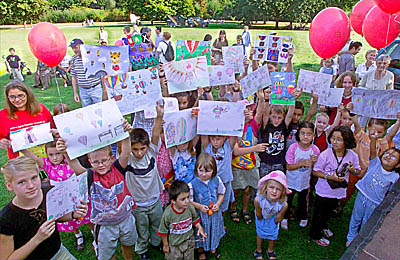 MOERS. Mit Phantasie und Buntstiften gingen Mädchen und Jungen bis zu einem Alter von 13 Jahren auf große Fahrt. Anläßlich des dritten Ballonfestivals im Freizeitpark hatte die Sparkasse Moers die Kinder des Knax-Sparklubs zu einem Malwettbewerb eingeladen. Rund 100 Kinder gaben am zweiten Festivaltag im Schatten der Himmelsgiganten ihre Ergebnisse ab. „Die Bilder haben uns alle so gut gefallen, daß wir schließlich jedem Kind einen Preis gegeben haben“, schwärmte Monika Pogacic (ganz links) beim Blick auf die Ergebnisse.