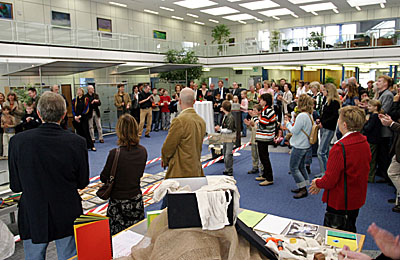 Der Lese-Bus ist eine Initiative der Stadtbücherei, ihres Fördervereins und der Sparkassenkulturstiftung Neukirchen-Vluyn zur Leseförderung. Kornelia Kuhn, die Vorsitzende des Kuratoriums der Kulturstiftung, sagte vor rund 150 kleinen und großen Gästen der Ausstellungseröffnung: „Wenn aus der Begeisterung für Buchstaben die Begeisterung erwächst, sie in Büchern zu lesen, haben wir unser Ziel erreicht.“