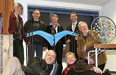 Am Mittwoch¸14. Dezember, tagte nun die Jury – und sie tat sich schwer, wie Edith Justen-Bechstein, Vorsitzende des Ausschusses für Stadtmarketing und Kultur, eingestand. „Wir hätten am liebsten alle prämiert.“ Aber man musste sich auf drei Werke einigen. Geldpreise gibt es für Piet Bohnes Skulptur „Neue Männer braucht das Land“, das Modell eines mit Kronkorken gespickten Rades von Aloys Cremers, das endgültig in drei Metern Größe Aufstellung finden wird, sowie Ernst Bartens Skulptur „Flugversuch“. Man wird sie demnächst auf dem Günter-Rehse-Weg betrachten können.
