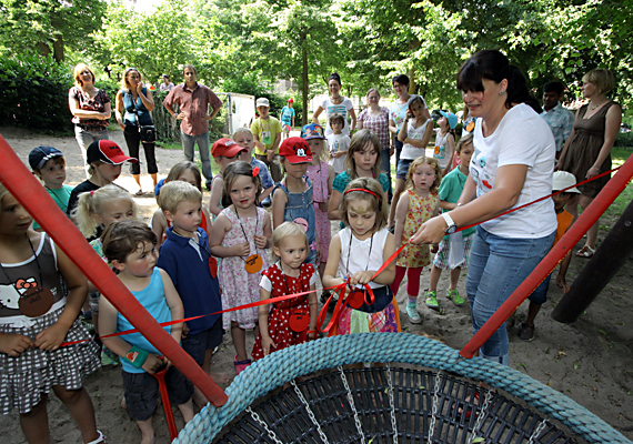 RHEINBERG. Eine eigene Vogelnestschaukel. Lange haben die Kinder im katholischen Kindergarten St. Peter davon geträumt. „Diese Anschaffung ist sehr kostspielig und durch unseren normalen Haushalt nicht realisierbar“, schrieb Ulrike Schiffer, die Leiterin der Kindertagesstätte am Kirchplatz, an die Sozialstiftung der Sparkasse. Kuratorium und Vorstand stimmten einem Zuschuss von 1500 Euro zu. Und so konnte der Kindergarten mit Hilfe des Fördervereins und der Gemeinde den Wunsch der Kinder und Erzieher nun erfüllen.