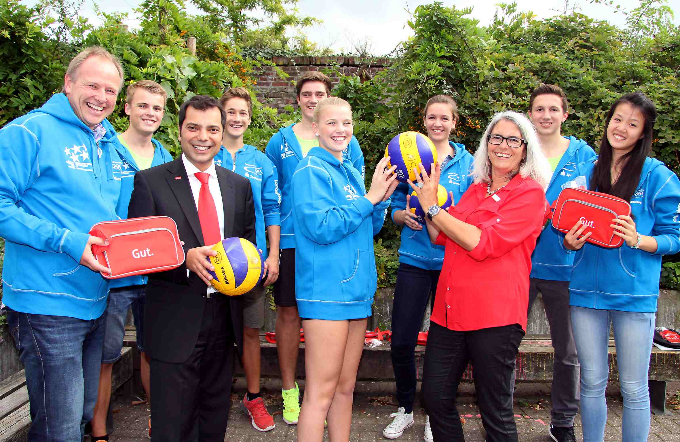 MOERS. Die Beachvolleyballer des Gymnasiums Adolfinum haben sich für das Bundesfinale von ‚Jugend trainiert für Olympia' in Berlin qualifiziert. Pünktlich zur Abreise überreichte Sparkassenchef Giovanni Malaponti der Mannschaft jetzt die offiziellen Kapuzenpullover des Bundeswettbewerbs. Sportlehrer Martin Schattenberg: „Die Jungen und Mädchen haben in der NRW-Qualifikation ganz stark gespielt und sich die Fahrt nach Berlin redlich verdient." Dort werden die Moerser auf die bundesweit besten Schülermannschaften treffen. Giovanni Malaponti: „Wir unterstützen regelmäßig und verlässlich den Sport in unserer Region – insbesondere im Jugendbereich." Zugleich ist die Sparkassen-Finanzgruppe Hauptsponsor von ‚Jugend trainiert für Olympia'. „Schön, dass ein Team aus unserem Geschäftsgebiet in Berlin dabei ist", so Giovanni Malaponti.