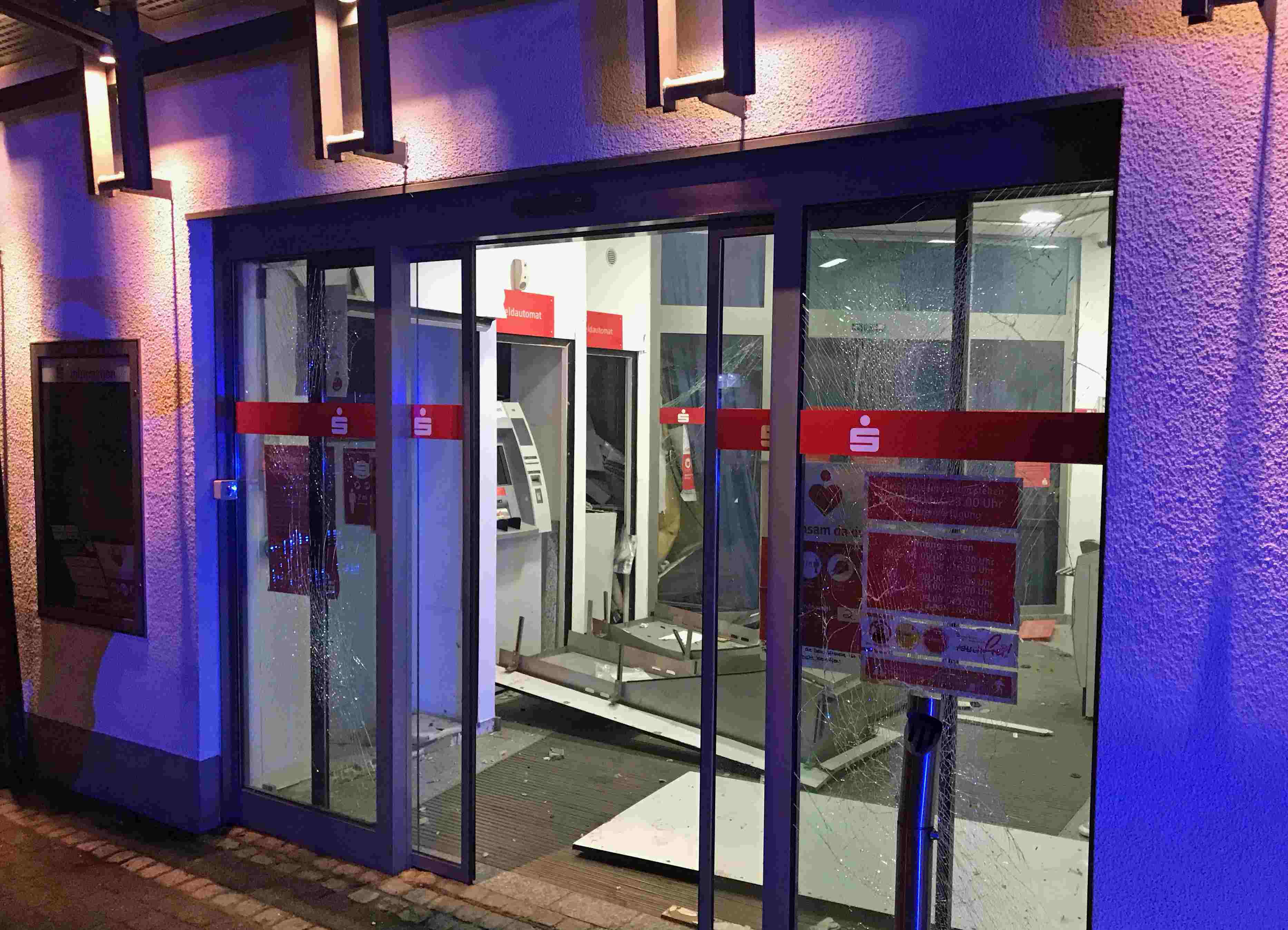 MOERS. Drei Unbekannte sprengten in der Nacht von Montag auf Dienstag (heute) gegen 03.30 Uhr den Geldautomaten der Sparkasse am Niederrhein an der Bahnhofstraße in Moers-Kapellen. Zeugen beobachteten, wie drei dunkel gekleidete Männer aus den Räumen der Sparkasse flüchteten und in einen dunklen Pkw stiegen, an dessen Steuer ein vierter Komplize wartete. Anschließend fuhr das Fahrzeug mit hoher Geschwindigkeit Richtung Bendmannstraße davon. In Höhe des Kreuzes Kamp-Lintfort wurde das Fahrzeug in Fahrtrichtung Niederlande letztmalig gesehen.