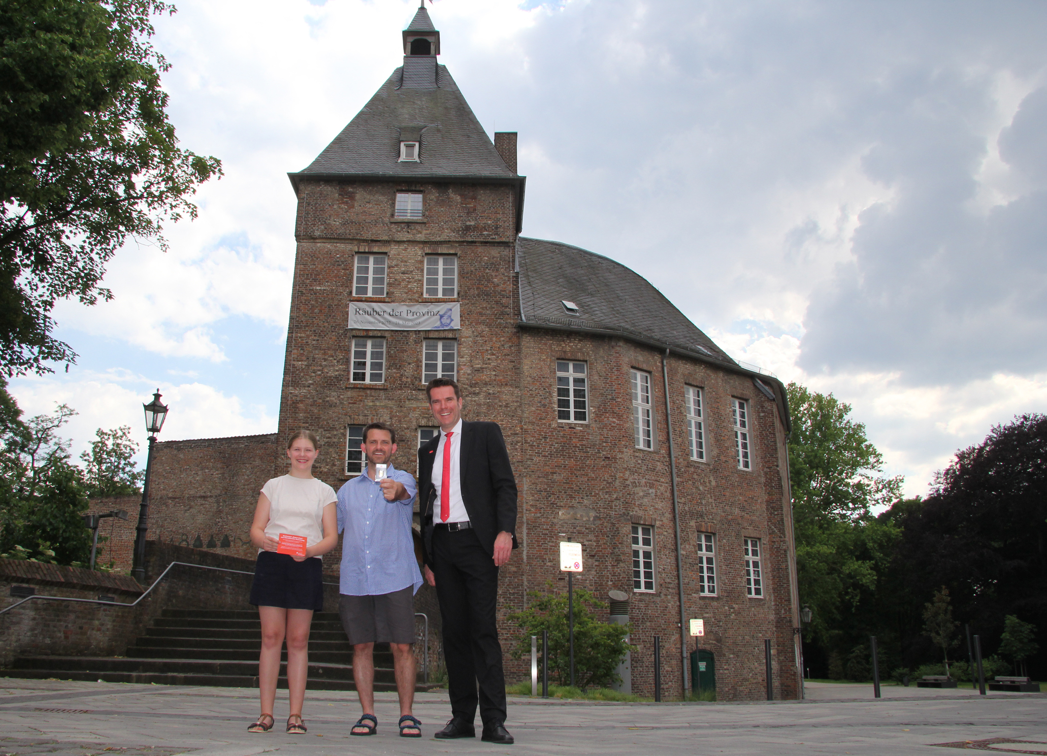 „244 Münzen waren drin“, sagt Marketingchef Stefan Ertelt und Jörg Stasch verrät: „Ich habe 245 getippt.“ Den Gewinn des fünf Gramm schweren, aber immerhin rund 340 Euro wertvollen Barrens verdankt der Moerser Familienvater hauptsächlich seiner Tochter Mia. „Ich wollte zuerst gar nicht mitmachen, doch Mia hat die Karte für mich ausgefüllt, ich brauchte nur noch die Zahl eintragen“, sagt Jörg Stasch. Drum reichte Papa das goldene Stück auch gleich an seine zwölfjährige Tochter weiter. Und will die das Gold versilbern? – Mias Antwort kommt unverzüglich: „Nein, den Barren behalte ich auf jeden Fall.“ Dazu lächelt Mutter Kerstin im Schatten des Schlosses huldvoll.