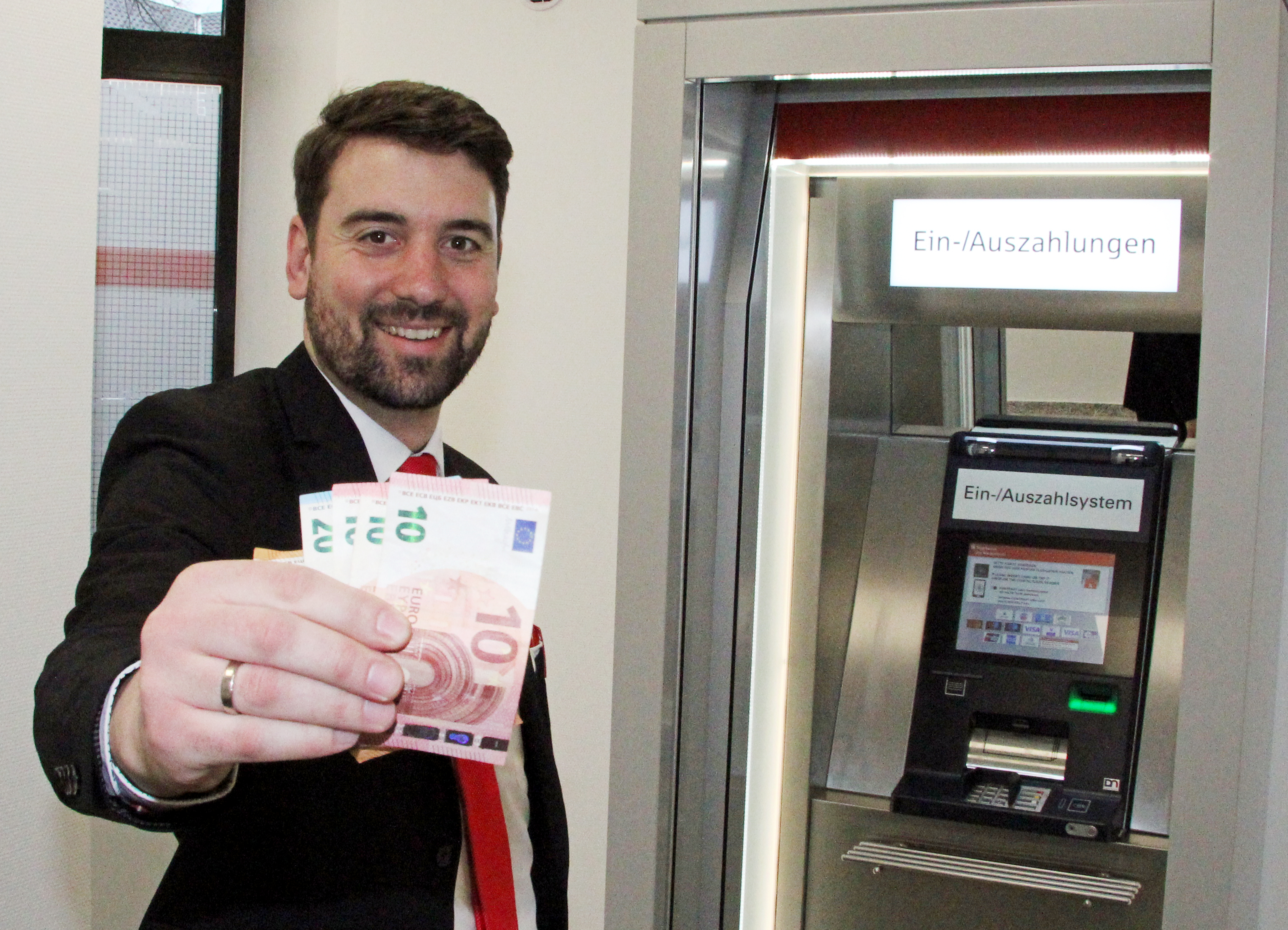 SONSBECK. Wegen Lieferschwierigkeiten dauerten die Reparaturarbeiten im SB-Foyer der Sparkasse an der Hochstraße in Sonsbeck neun Monate. „Unsere Kunden mussten lange warten und sind jetzt sehr froh“, sagt Geschäftsstellenleiter Markus Hans. Schon wenige Minuten nach Inbetriebnahme des neuen Automaten für Ein- und Auszahlungen hoben die ersten Kunden Geld ab.