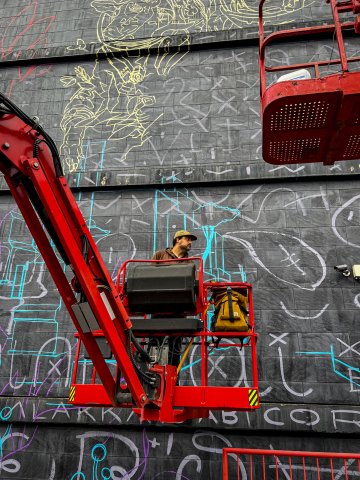 Acht Tage lang setzten die Street-Art-Künstler Jabi Corte und Malakkai die Ideen von vier Schulkassen aus Moers und Neukirchen-Vluyn an der Wand der Sparkasse um.