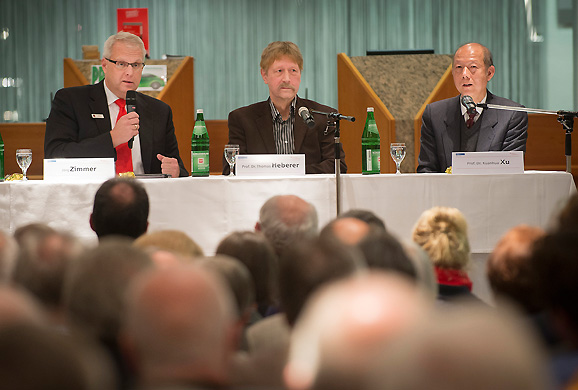 Trotz kritischer Strömungen säßen die Regierenden grundsätzlich fest im Sattel, stellte der Politikwissenschaftler fest: „Die politische Elite entwickelt das Land erfolgreich, weil es die Mehrheit am Wachstum teilhaben lässt.“ Ob das so weiter gehen kann, bezweifelt Heberer: „China wird auf lange Zeit die USA wirtschaftlich und wissenschaftlich nicht überflügeln können.“ Das sieht Dr. Klaus T. Müller von ThyssenKrupp Steel Europe ganz anders: „Das Land wird schon bald die Wirtschaftsmacht Nummer Eins sein.“ Seine Erfahrungen in der Stahlbranche zeigten, dass früher deutsche Firmen neben Industrieanlagen auch viel Know-how nach China brachten. „Heute stehen die modernsten Werke in China und wir schauen uns was ab.“