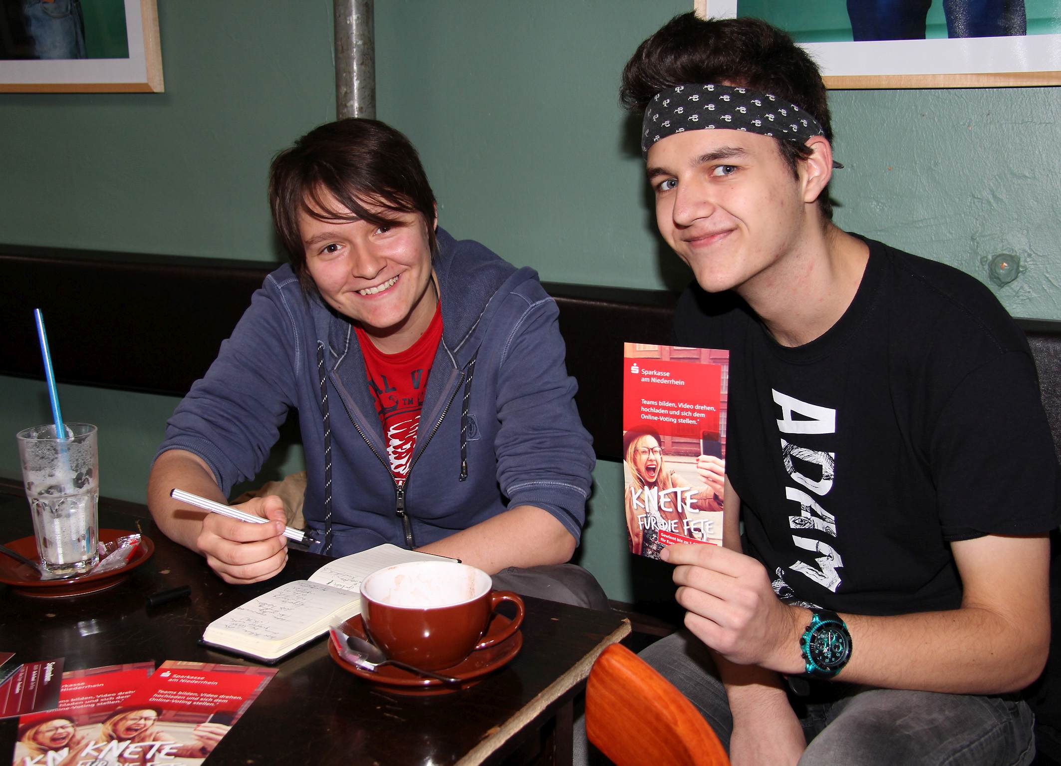 NIEDERRHEIN. Es tut sich was beim Video-Wettbewerb „Knete für die Fete“ von der Sparkasse am Niederrhein. Die ersten Schülerteams sind ins Rennen um die 1.000, 750 und 500 Euro für ihre Abschluss-Partys eingestiegen. Im Xantener Stiftsgymnasium und im Moerser Grafschafter Gymnasium werden schon die ersten Ideen für einen Kurzfilm gesammelt, diskutiert und zu Papier gebracht. „Aktuell schreiben wir an gleich zwei Drehbüchern“, sagt Mara Wagmann aus Moers und lacht. Warum, das erklärt ihr Mitschüler Robin Leyendecker: „Wir wollen neben einem eher klassisch gemachten Film auch einen experimentellen herstellen.“ Gelingen beide, soll der gesamte Abschlussjahrgang abschließend darüber abstimmen, welches Video am Sparkassen-Wettbewerb teilnehmen soll. Mara und Robin sind gleichberechtigte Autoren und Regisseure. Zum Kernteam gehört noch Produktionsleiter Roman Hasarov.