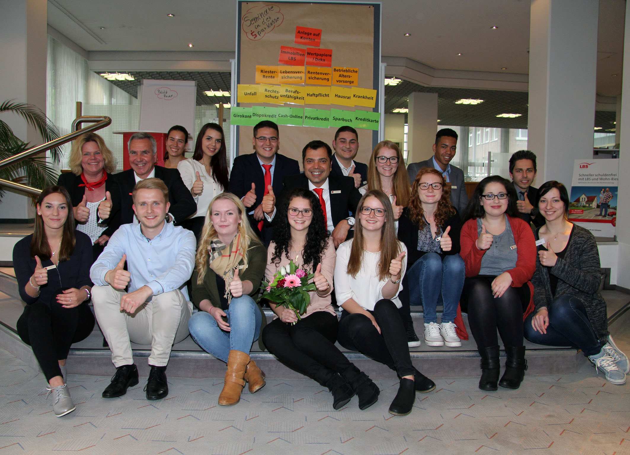 NIEDERRHEIN. Romina La Cognata bekam beim ersten Treffen der 16 neuen Auszubildenden der Sparkasse am Niederrhein gleich einen Blumenstrauß. Für das Geburtstagskind und die anderen angehenden Bankkaufleute blieb das allerdings nicht die einzige Überraschung an diesem Abend. Vom Vorstandsvorsitzenden Giovanni Malaponti sowie von Personalchef Jürgen Renner und Ausbilderin Sabine Lucas erfuhren sie, dass ihr Ausbildungsbetrieb eine der „digitalsten Sparkassen Deutschlands ist“ (Malaponti) und dass sie im ersten Lehrjahr bereits monatlich 744,68 Euro netto überwiesen bekommen.