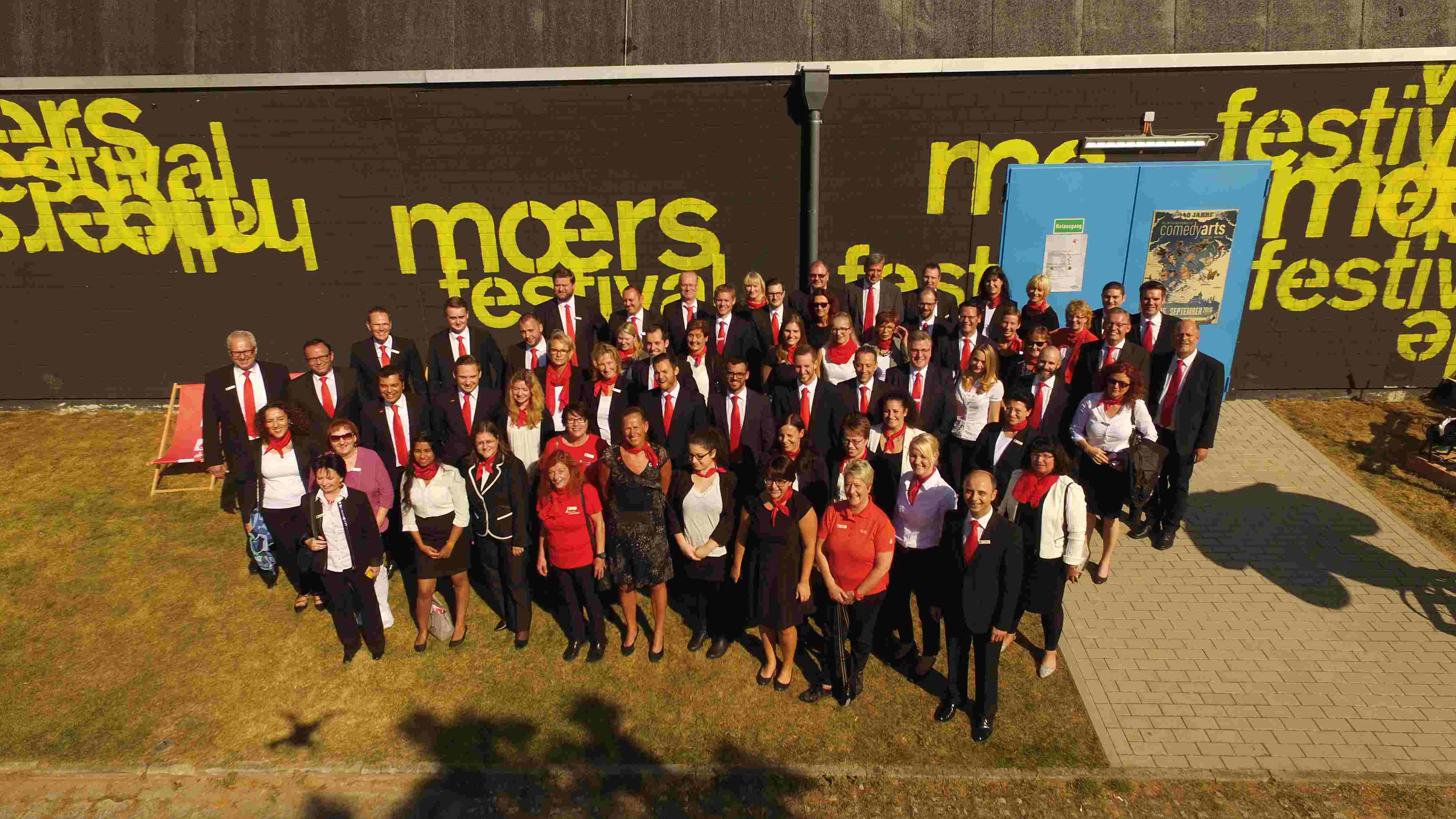 MOERS. Der Vereinsfrühschoppen mit rund 1000 Gästen in der Festivalhalle ist eine schöne Gelegenheit, Freunde und Kunden zu treffen. Mehr als 60 Kolleginnen und Kollegen unserer Sparkasse hatten sich den Tag fest im Kalender notiert. „Sie werden uns alle problemlos erkennen“, sagte Vorstandsvorsitzender Giovanni Malaponti auf der Bühne und erntete dafür einen Lacher.