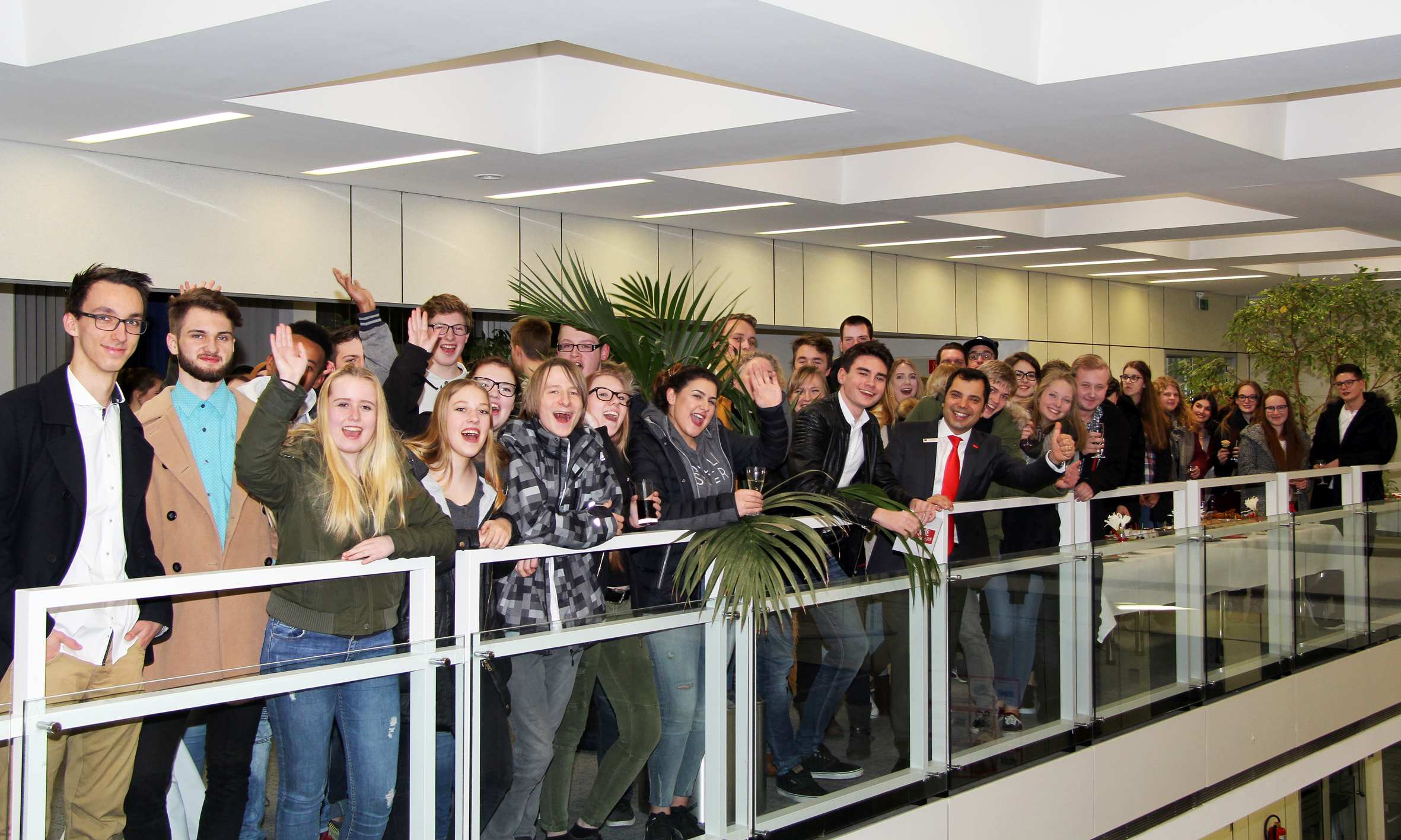 Karneval in der Sparkasse heißt, dass die Mitarbeiterinnen und Mitarbeiter am Altweiber-Donnerstag sich zu unterschiedlichen Mottos kostümieren und ihre Geschäftsstellen schmücken. Hier ein Schnappschuss aus der Kundenhalle der Hauptstelle in Moers anlässlich des Prinzenempfangs.
