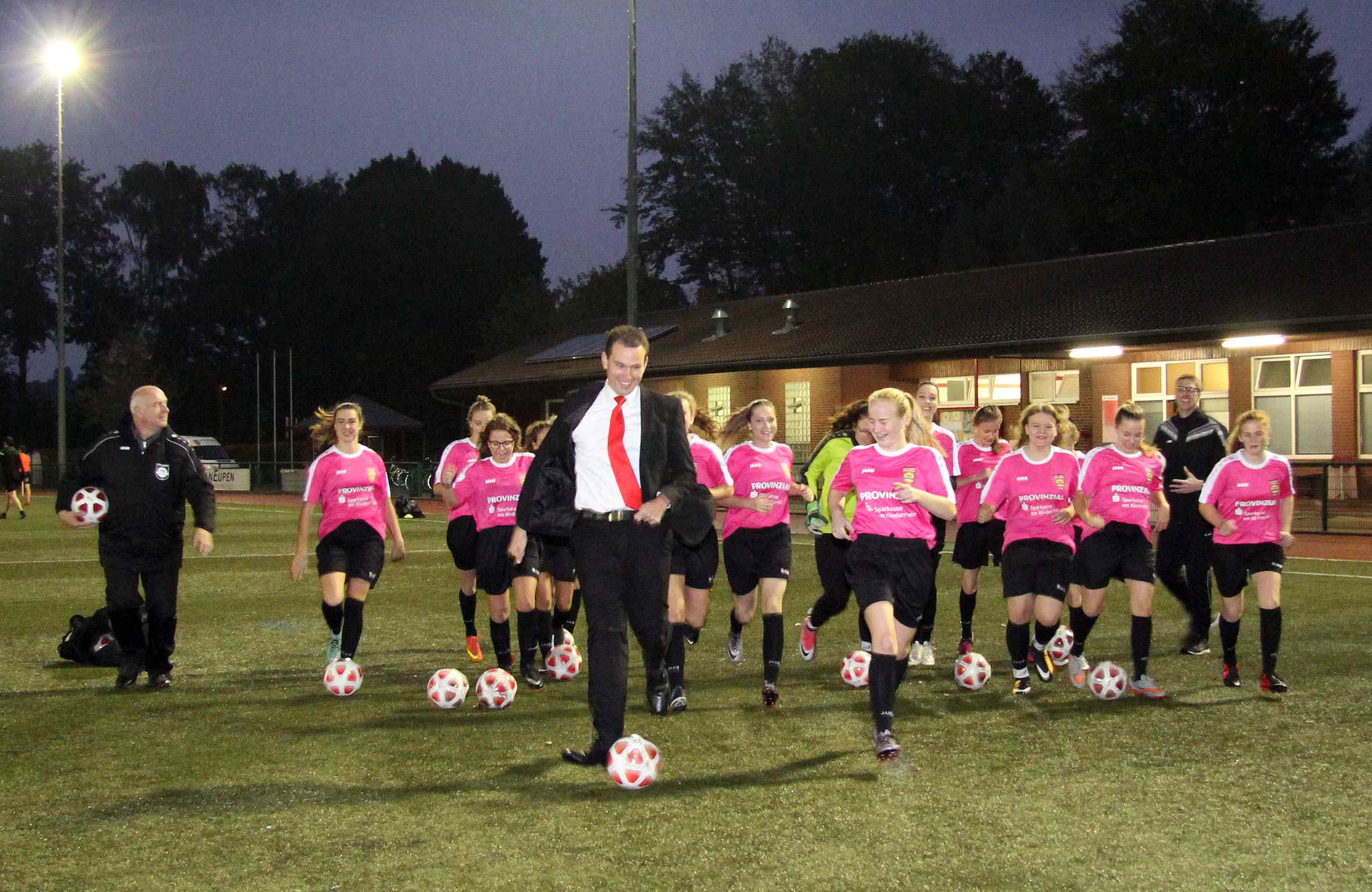 SONSBECK. Trainer Heiko Bölting findet die Farbe der neuen Trikots ziemlich krass. „Doch die haben sich die Mädchen nun mal gewünscht“, sagt der Coach. Und jetzt, als die U19-Juniorinnen sie zum ersten Mal beim abendlichen Training tragen, ist auch er beeindruckt: „Die Shirts signalisieren Power und Tempo-Fußball.“ Genau damit wollen die Spielerinnen des SV Sonsbeck die Meisterschaft in der Kreisliga erringen. Die Sparkasse am Niederrhein und die Provinzial haben die neuen Trikots finanziert. „Damit wollen wir der Mannschaft den Rücken stärken“ sagt der stellvertretende Geschäftsstellenleiter Patrick Beyl, schnappt sich einen Ball und kickt fürs Gruppenbild gerne mit.