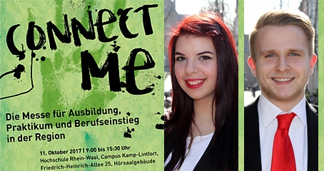 NIEDERRHEIN. 44 verschiedene Unternehmen und Organisationen vom Niederrhein informieren am Mittwoch, 11. Oktober, von 9 bis 15.30 Uhr an der Hochschule Rhein-Waal über Ausbildung, Praktikum und Berufseinstieg. Die Messe „connect me“ findet zum vierten Mal statt. Am Stand unserer Sparkasse in der Mensa berichten unsere Azubis Nimet Simsek und Timm Ernicke, warum eine Ausbildung bei unserer Sparkasse mehr ist, als eine Banklehre.