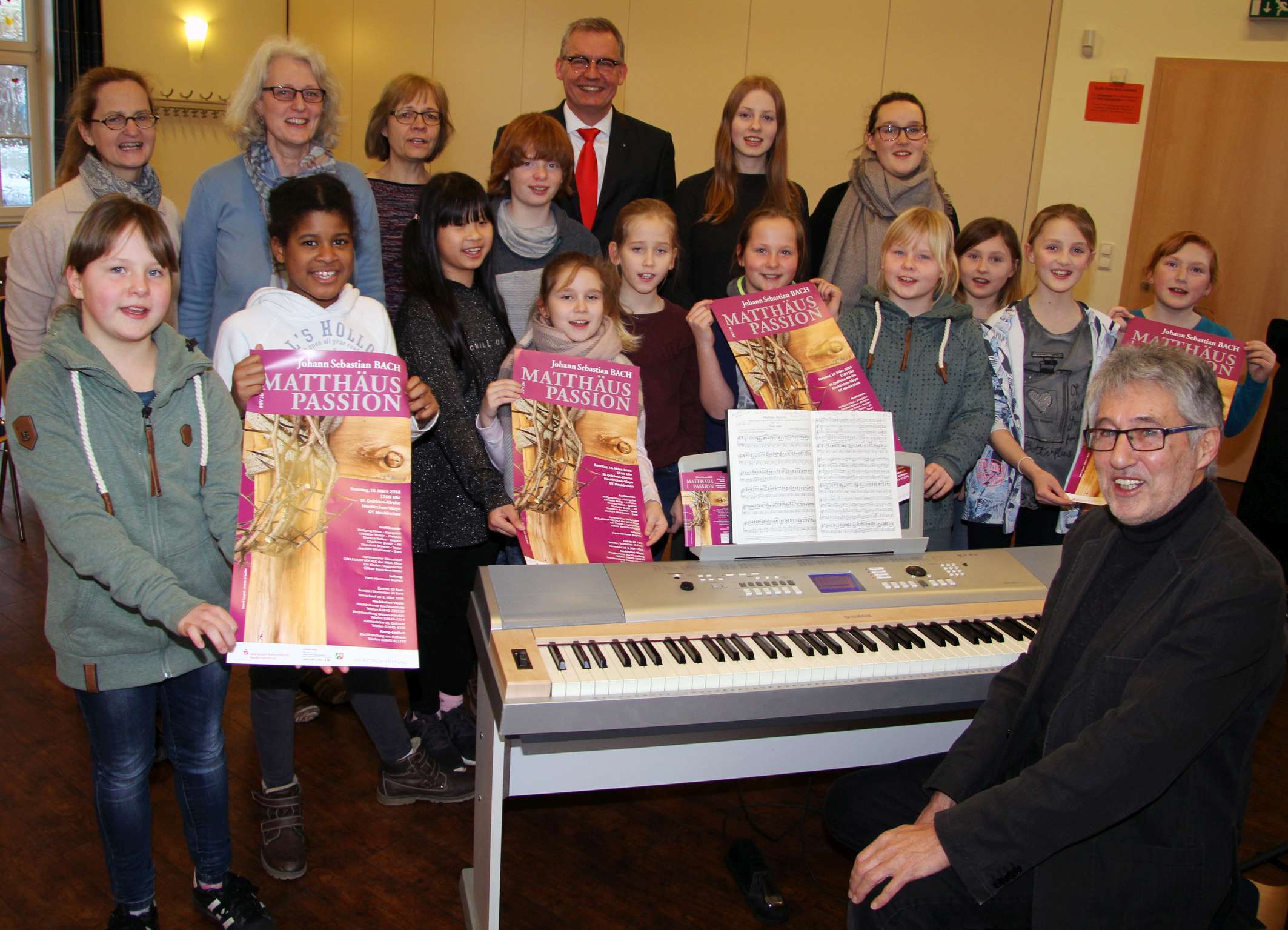 NEUKIRCHEN-VLUYN. Auf den eben frisch gedruckten Plakaten zu Bachs „Matthäus Passion“ hatten sich die kleinen Sängerinnen bei der Probe im Gemeindehaus schnell entdeckt. Gleich unter den Solisten und zusammen mit dem Collegium Vocale der SELK, dem Kammerchor Düsseldorf und dem Cölner Barockorchester steht es: ein Kinder- und Jugendchor. „Der evangelische Kinderchor Neukirchen und der evangelische "In-Between"-Chor Vluyn singen die hohen Choralstimmen“, sagt Hans-Hermann Buyken. Er wird die Aufführung am Sonntag, 18. März, um 17 Uhr in der St. Quirinus Kirche an der Ernst-Moritz-Arndt-Straße leiten. Karten für 20 Euro (ermässigt 10 Euro) gibt es in der Neukirchener Buchhandlung und in der Buchhandlung Giesen-Handick sowie im Kirchenbüro St. Quirinus. Die Kulturstiftung der Sparkasse, das Ministerium für Kultur und Wissenschaft und die Heinz Trox-Stiftung fördern das Konzert.