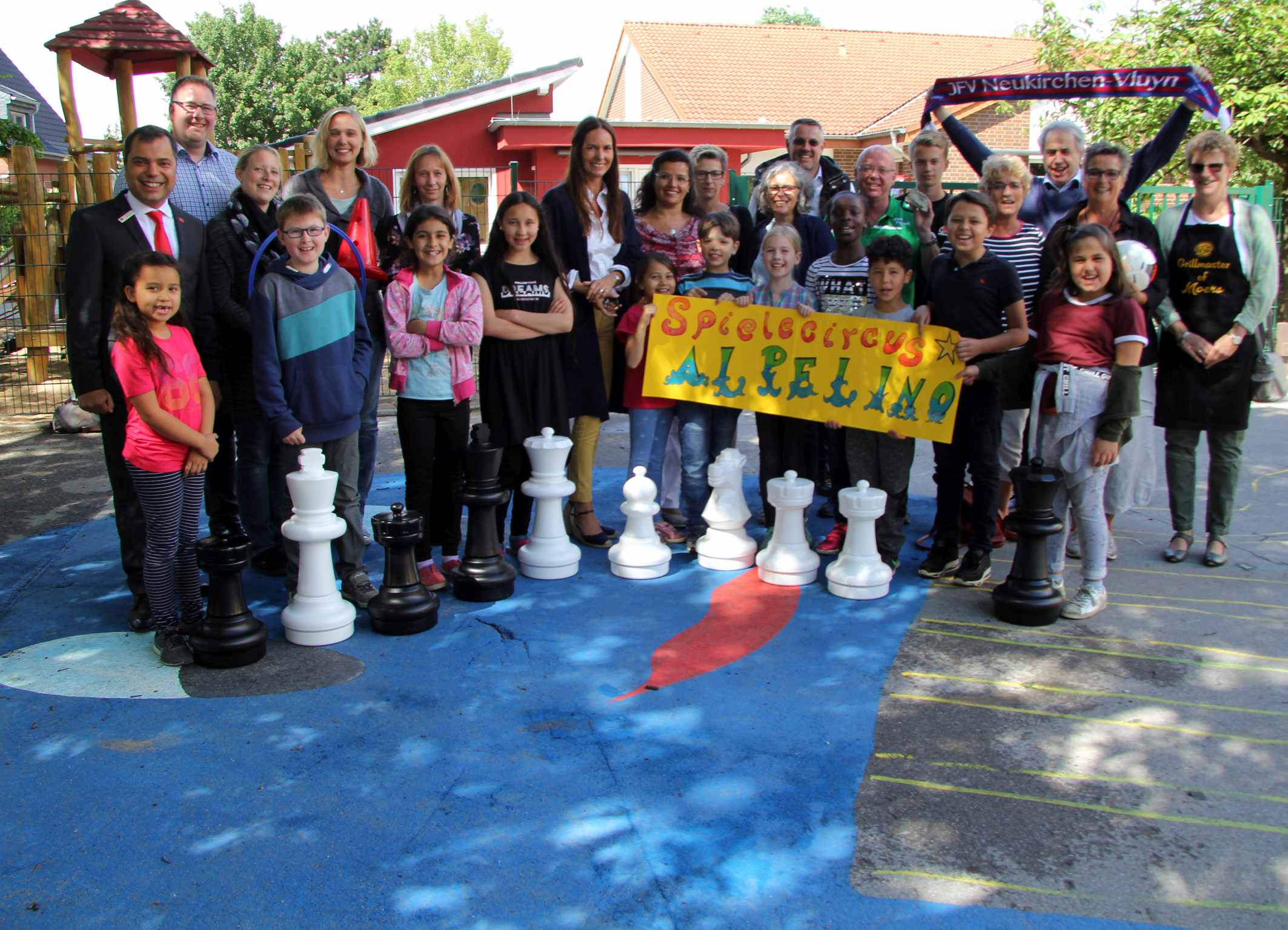 7.408,09 Euro kamen bei der achten GiroCents-Runde zusammen. Giovanni Malaponti, Vorstandsvorsitzender der Sparkasse am Niederrhein, reichte das von 2.800 Kunden gespendete Geld jetzt an sechs Vereine weiter. Vertreter aller sechs Vereine schauten sich auf dem Schulhof der Grundschule in Moers-Hülsdonk die neue Einmaleins-Krake an und berichteten von ihren aktuellen Projekten.