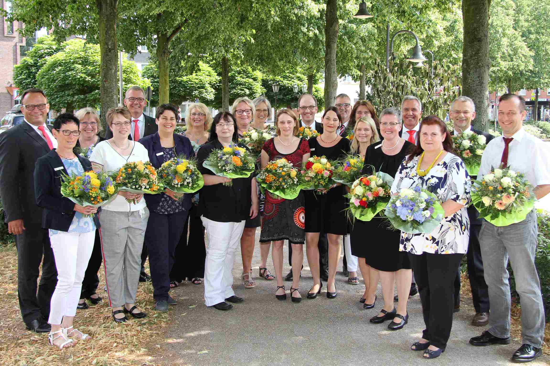Der Vorstand der Sparkasse am Niederrhein hatte seine Dienstjubilare zu einer Feierstunde eingeladen. An der geselligen Runde nahmen auch der Personalchef sowie der Personalratsvorsitzende teil. V.l.n.r.: Frank-Rainer Laake, Renate Scholten, Sabine Helten, Christina Bauer, Bernd Zibell, Tanja Mölders, Angelika Schepers, Nicole Teschner, Matina Parchem, Christiane Cornelißen, Stefanie Bergsma, Simon Rediger, Tanja van Geemen, Holger Klucken, Nicole Weber, Katrin Steffans, Bärbel Wirsig, Jürgen Renner, Rita Papenfuß, Peter Lenzen und Björn Heinen.