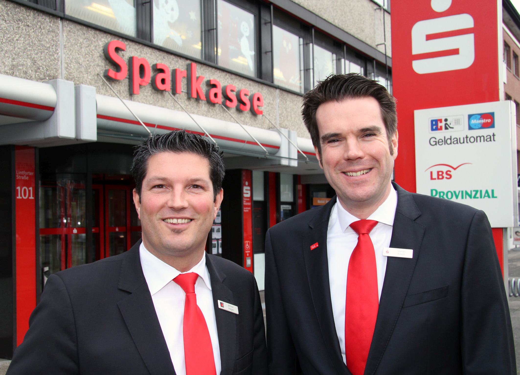 Stefan Ertelt (rechts) ist der neue Vertriebschef der Sparkasse. Die Leitung der Geschäftsstelle in Repelen übergab er an Oliver Heger.