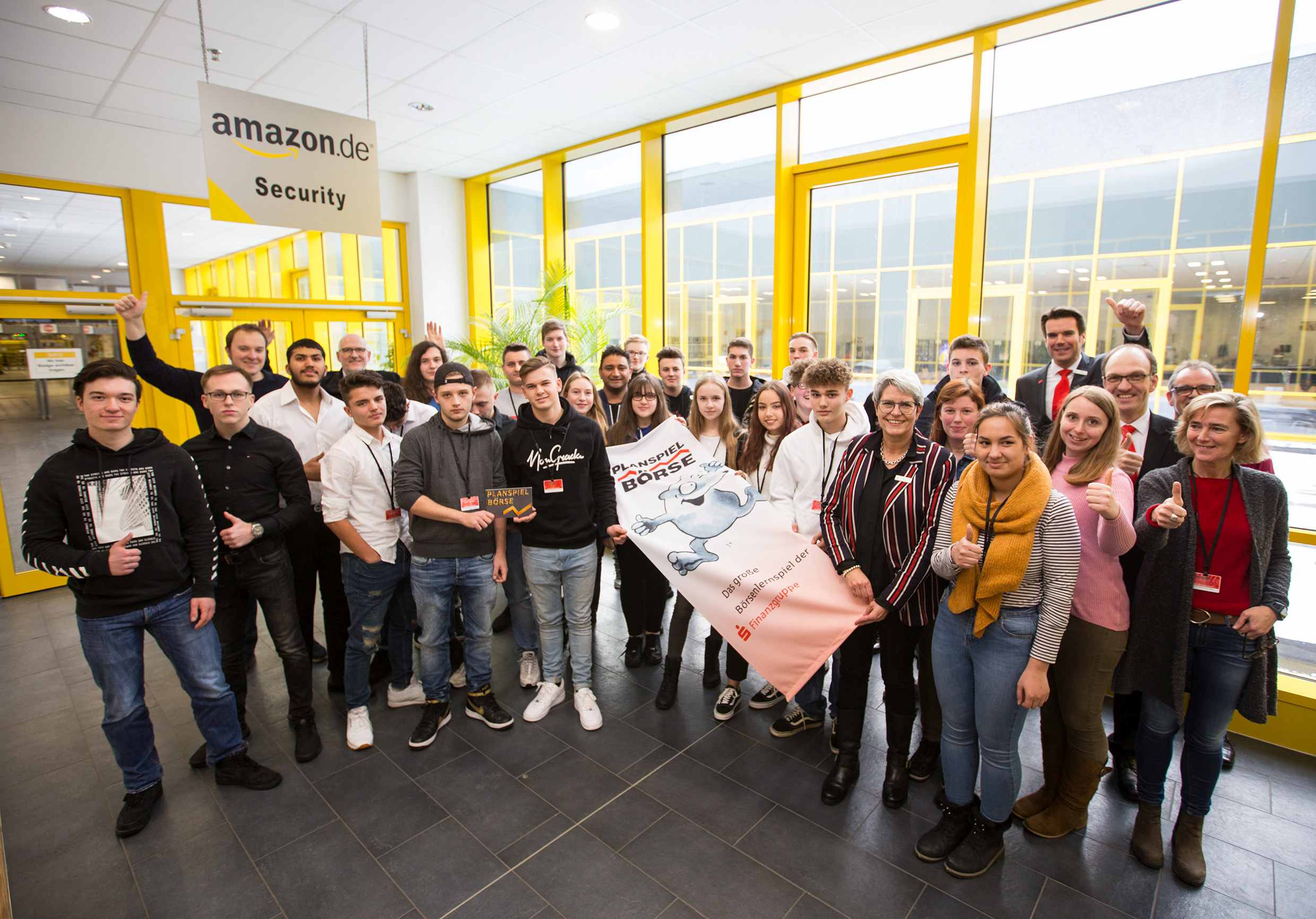 Die Sparkasse am Niederrhein lud Schüler, die erfolgreich am Planspiel Börse teilgenommen hatten, zu einer Führung durch das Amazon-Logistikzentrum in Rheinberg ein. Anschließend überreichten Spielleiterin Monika Pogacic, Marketing-Chef Stefan Ertelt und Anlageberater Simon Rediger Urkunden und Geldpreise. Die drei besten Teams kommen in diesem Jahr vom Mercator-Berufskolleg, der Rheinberger Europaschule und dem Berufskolleg für Technik.
