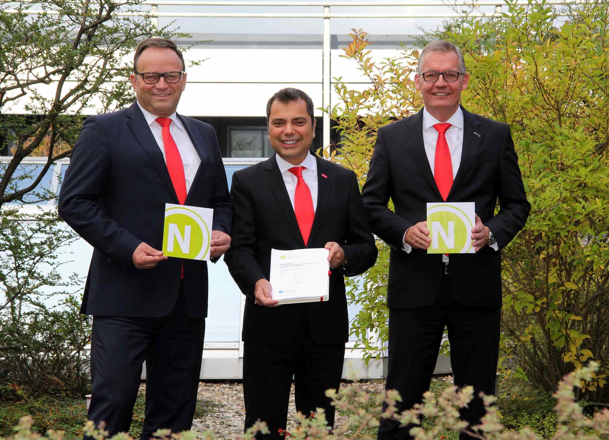 Der Vorstand der Sparkasse am Niederrhein veröffentlichte jetzt einen 17-seitigen Nachhaltigkeitsbericht, der zuvor das zertifizierte Siegel des Deutschen Nachhaltigkeitskodex (DNK) erhalten hatte (v.l.n.r.): Frank-Rainer Laake, Giovanni Malaponti und Bernd Zibell.