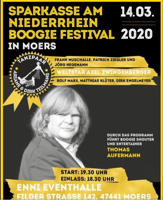 Das erste Boogie Festival in Moers mit Weltstar Axel Zwingenberg ist wegen der Infektionsgefahr mit dem Coronavirus abgesagt.