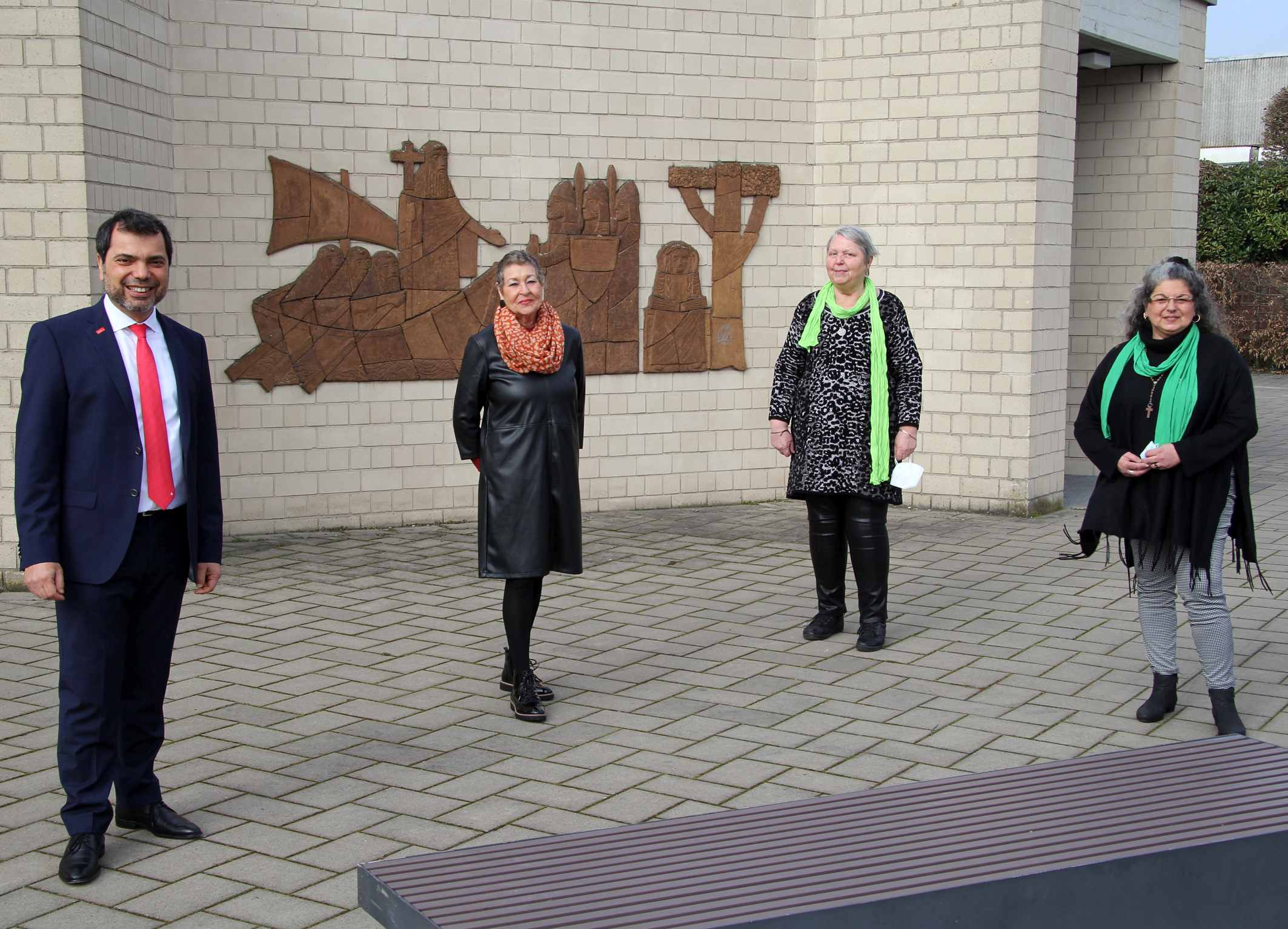 Giovanni Malaponti (ganz links) besuchte die Frauenselbsthilfe Krebs in Asberg und brachte 2.787,20 Euro aus dem Kundenspendenprogramm GiroCents mit. Anita Ahlers, Ursula Hartmann und Despina Klee (v.l.n.r.) leiten die Arbeit des Ortsvereins, der in diesem Jahr 25 Jahre besteht.