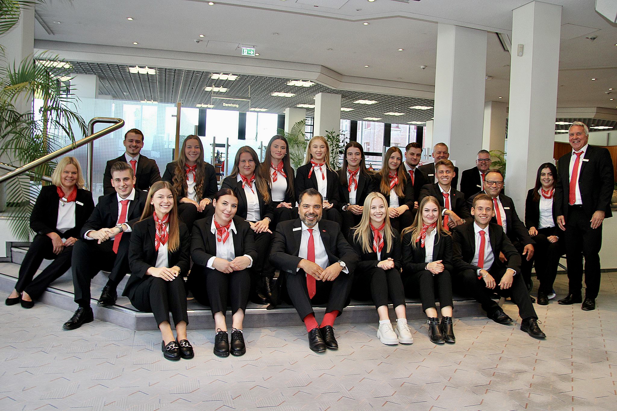 Der Vorstand der Sparkasse am Niederrhein begrüßte 16 neue Auszubildende. Der Vorstandsvorsitzende Giovanni Malaponti (Mitte) betonte: „Wir freuen uns sehr, dass wir Sie zu Bankkaufleuten ausbilden dürfen, schön, dass Sie da sind.“