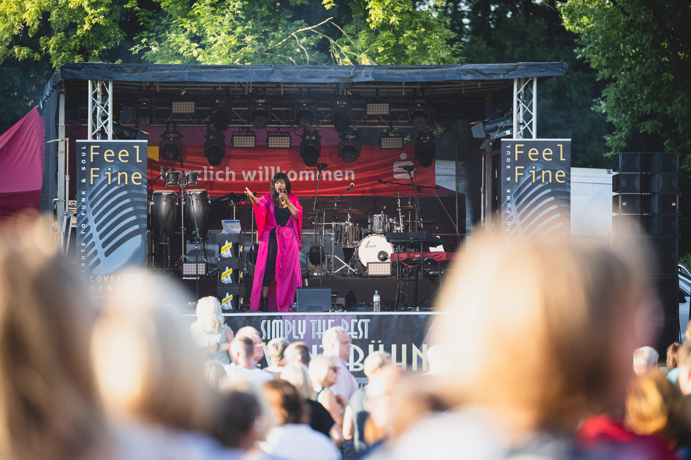 Die amerikanische Sängerin Shondell war der erste Live-Act beim sommerlichen „Sparkassen-Summer-Soul“. Als die Sonne unterging übernahm die achtköpfige Cover-Band „Feel Fine“ das Kommando und begeisterte rund 1.500 Musikfans im Kapellener Freizeitpark.