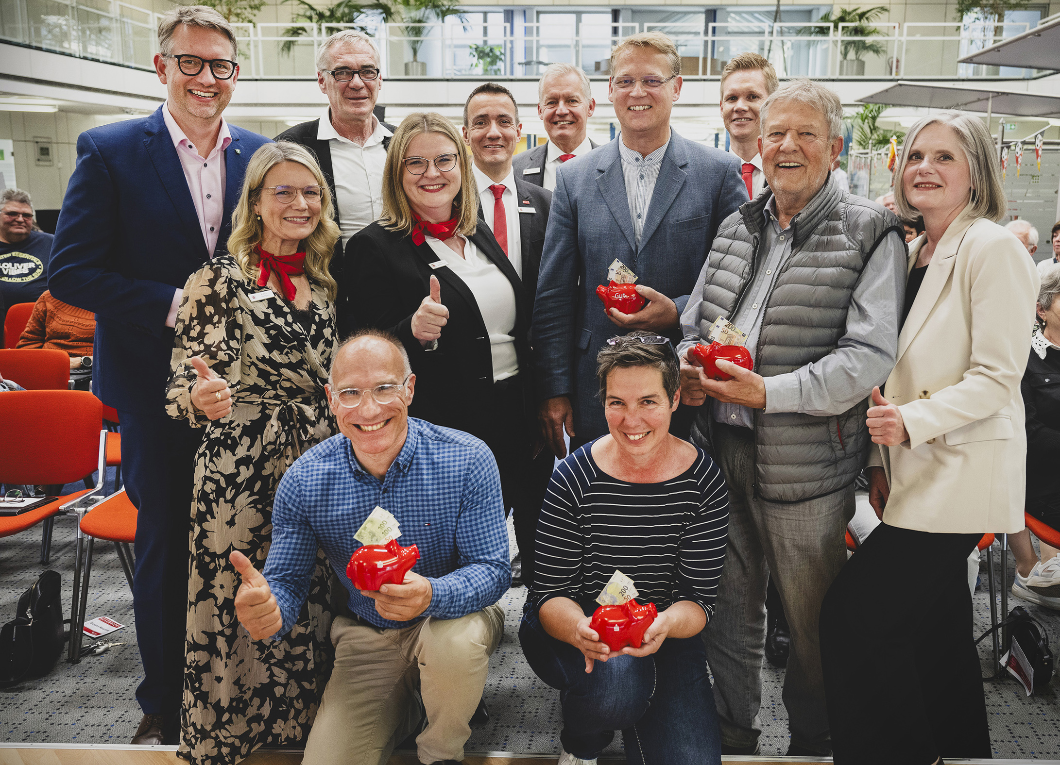 Beim Ehrenamtsforum in der Sparkassen-Geschäftsstelle an der Poststraße wurden unter den anwesenden Vereinsvertretern vier Extra-Spenden à 250 Euro verlost. Über den Gewinn freuten sich Torsten Blach (Kinderheimat, vorne links), Anneke van der Veen (Treff 55, rechts daneben), Georg Dicks (Tafel, 2. v. r.) und Pfarrer Frank Rusch (evang. Kirchengemeinde, links daneben) Es gratulierten herzlich (v.l.n.r.) Landrat Ingo Brohl, Katrin Steffans (Sparkasse), Bürgermeister Ralf Köpke, Anna Waldermann, Tim Rütters, Bernd Zibell und Björn Bremeyer (alle Sparkasse) sowie die Verwaltungsratsvorsitzende Claudia van Dyck, ganz rechts.