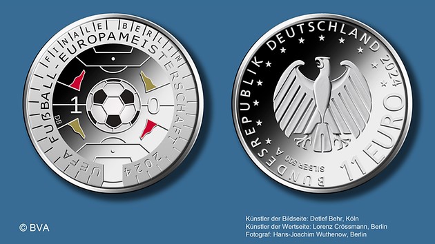NIEDERRHEIN. Die Deutsche Bundesbank hat eine 11-Euro-Sammlermünze „UEFA Fußball-Europameisterschaft 2024“ prägen lassen. Die Silbermünze ist 14 Gramm schwer und hat einen Durchmesser von 30 Millimetern. Sie kann ab Mittwoch, 15. Mai, in allen Geschäftsstellen der Sparkasse am Niederrhein erworben werden.